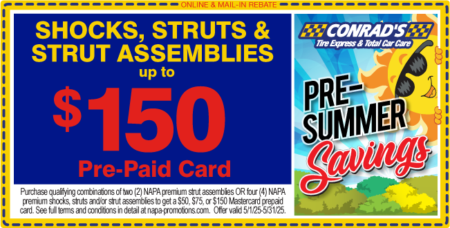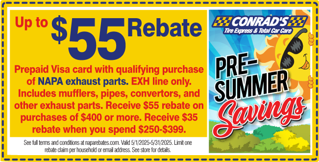Claim a $5 Visa prepaid card when purchasing a pair of NAPA Proformer Wiper Blades. Offer valid through 12/31/25. Redeem by 1/15/26 on NAPARebates.com. Use Promo Code: Proformer25W. Most vehicles. Cannot be combined with any other offer. Late claims will not be accepted.